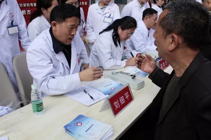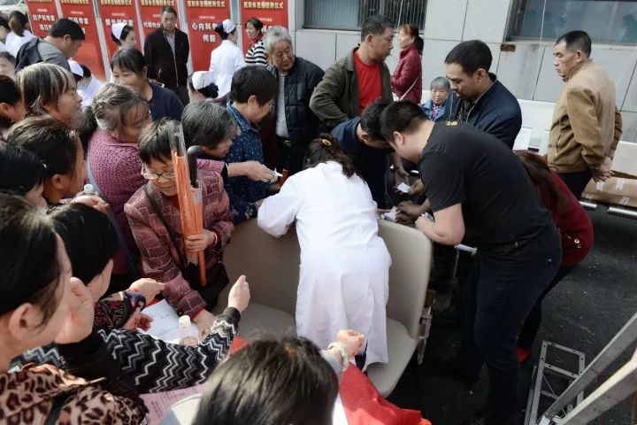 上午10点,仪式结束后,株洲市中心医院及株洲新兴医院联合派出的心血管内科、糖尿病科、肾内科、妇科、产科、普外科等六方面的专家教授进行现场义诊!