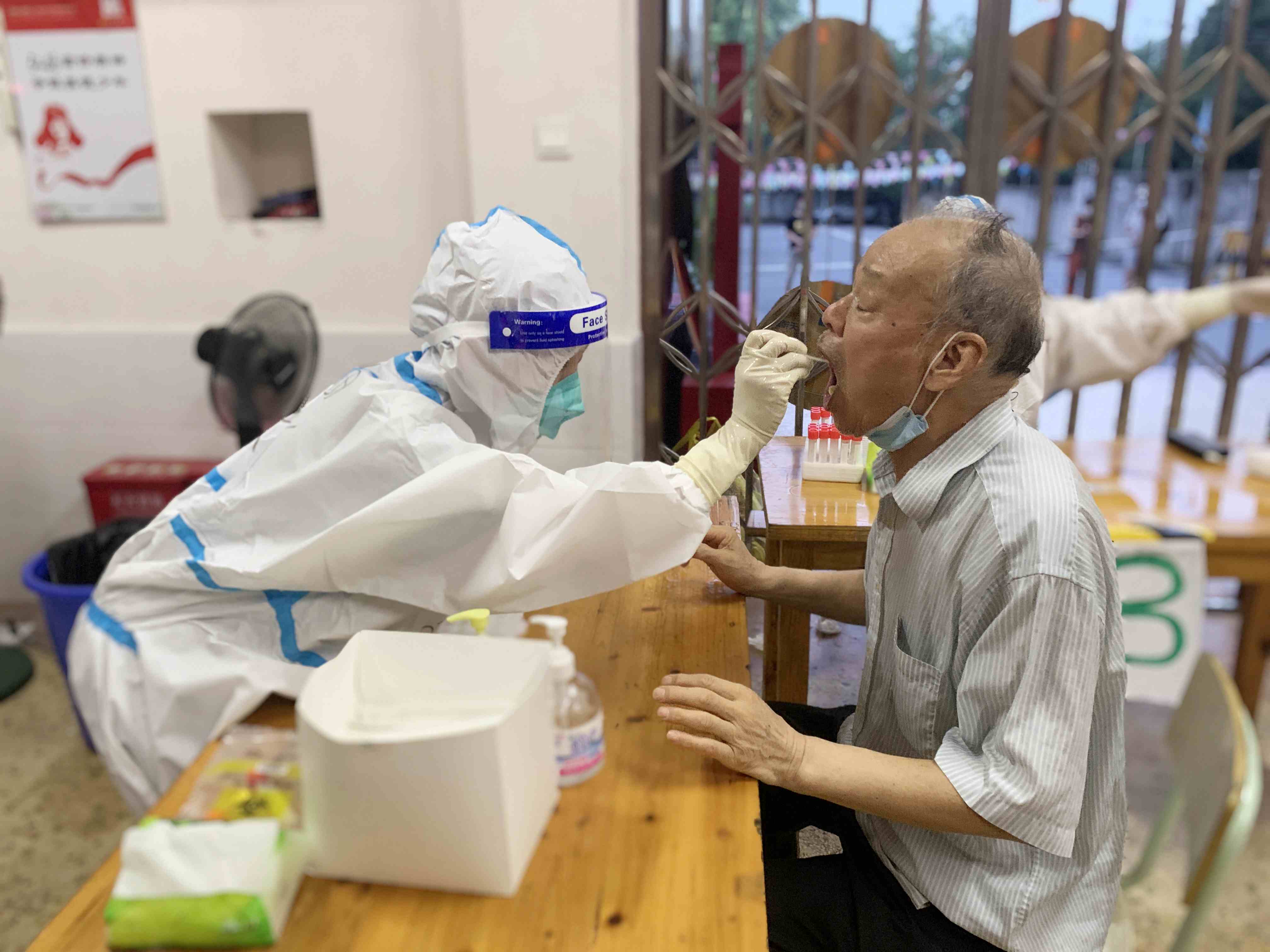 盛夏將近40°C高溫的炙烤,穿上隔離服、戴上口罩和防護鏡,我們雖然看不見他們的臉,但我們看到了一雙雙滿被汗水泛白的雙手,一只只因睡眠不足疲憊而水腫的雙眼,一個個因勞累席地而睡的身影,一位位放下孩子而投身工作的“狠心”爸爸媽媽、一位位父母手中寶貝的兒子女兒……從城區核酸采集點到乃至城鄉社區的每個角落,他們扛下了這場全員核酸檢測戰“疫”。沒有一個人遲疑、退縮,全部咬牙堅守在各自崗位。