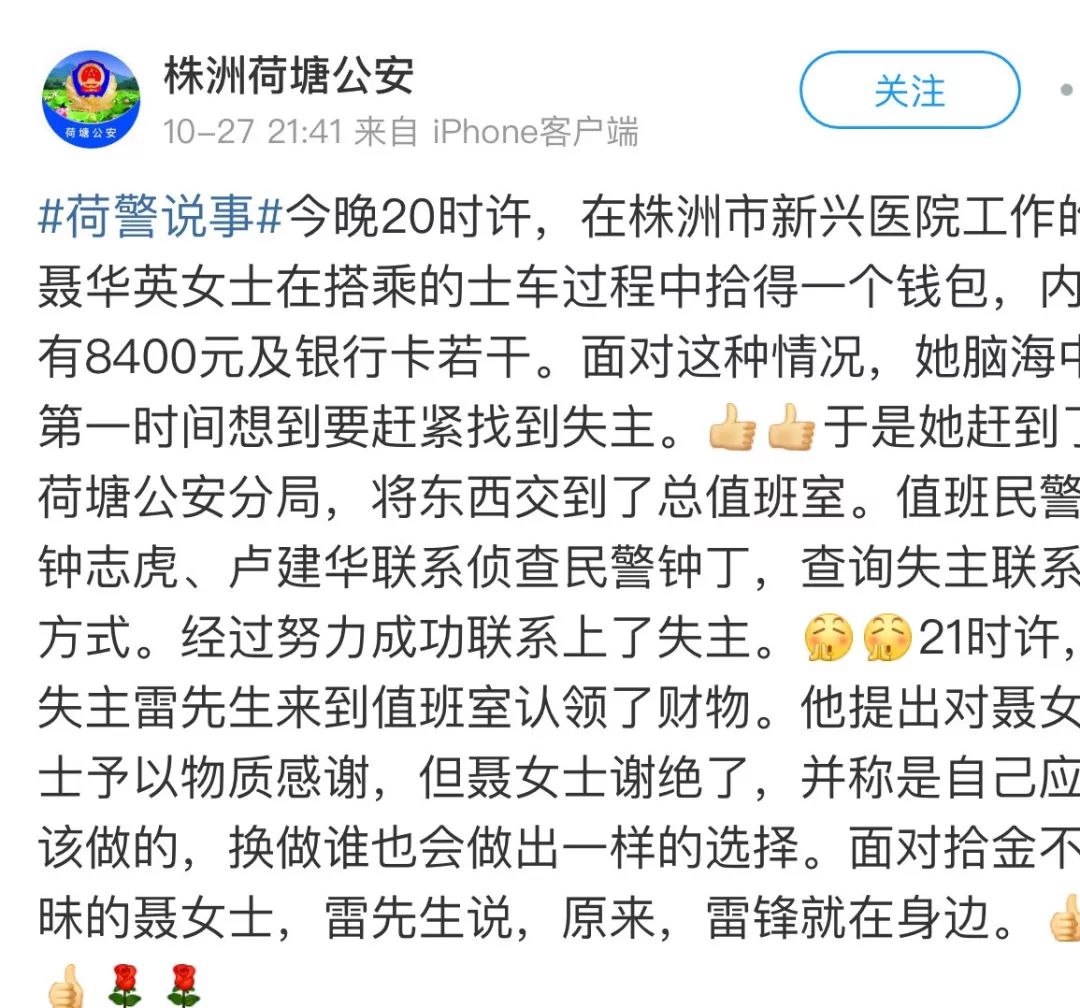 一个小小的举动,传递着无私的大爱。聂华英同志这种“拾金不昧”的行为,充分展现了新兴医院职工高尚的道德情操和精神风貌,积极传播了正能量,为我院增光添彩,值得我们传播和表扬,希望我们每一个人都向聂华英同志学习。